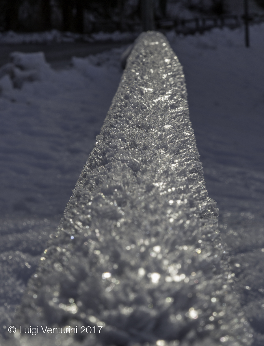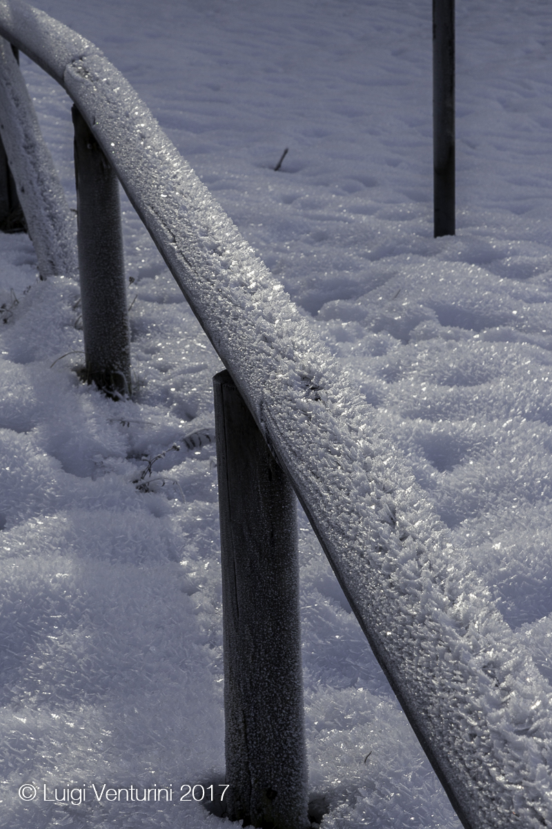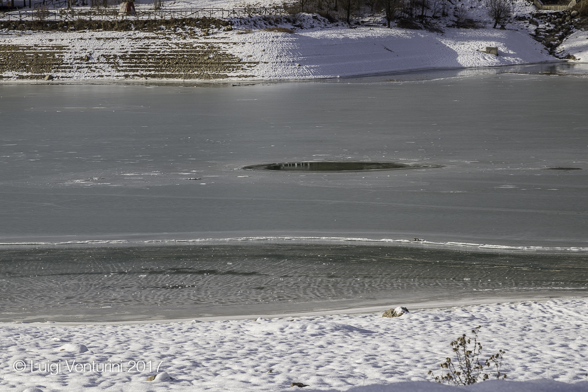Il lago infatti per tutto l’inverno si copre di ghiaccio ed il Piave, scorrendovi sotto, crea sulla superfice crepe, crateri, onde che poi ghiacciano, e suoni affascinanti ed un po’ inquietanti.